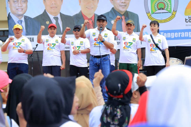 <p>Minggu (23/2), berlangsung Senam Sehat Bersama yang diselenggarakan oleh Pemerintah Kota Tangerang yang kali ini di pandu oleh...
