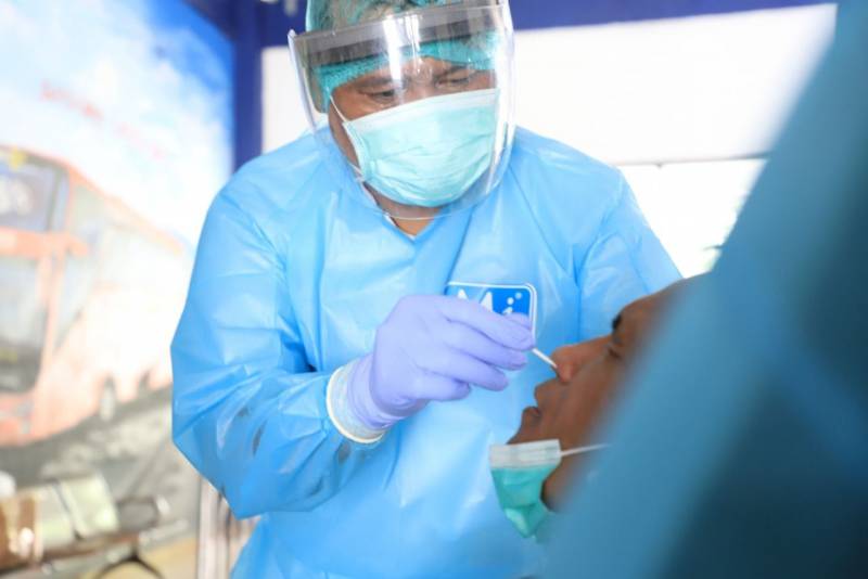 Pemerintah Kota Tangerang (Pemkot) melalui Dinas Kesehatan, melakukan swab acak jelang Natal dan Tahun Baru (Nataru) 2022, yang dilaksanakan di Terimal...