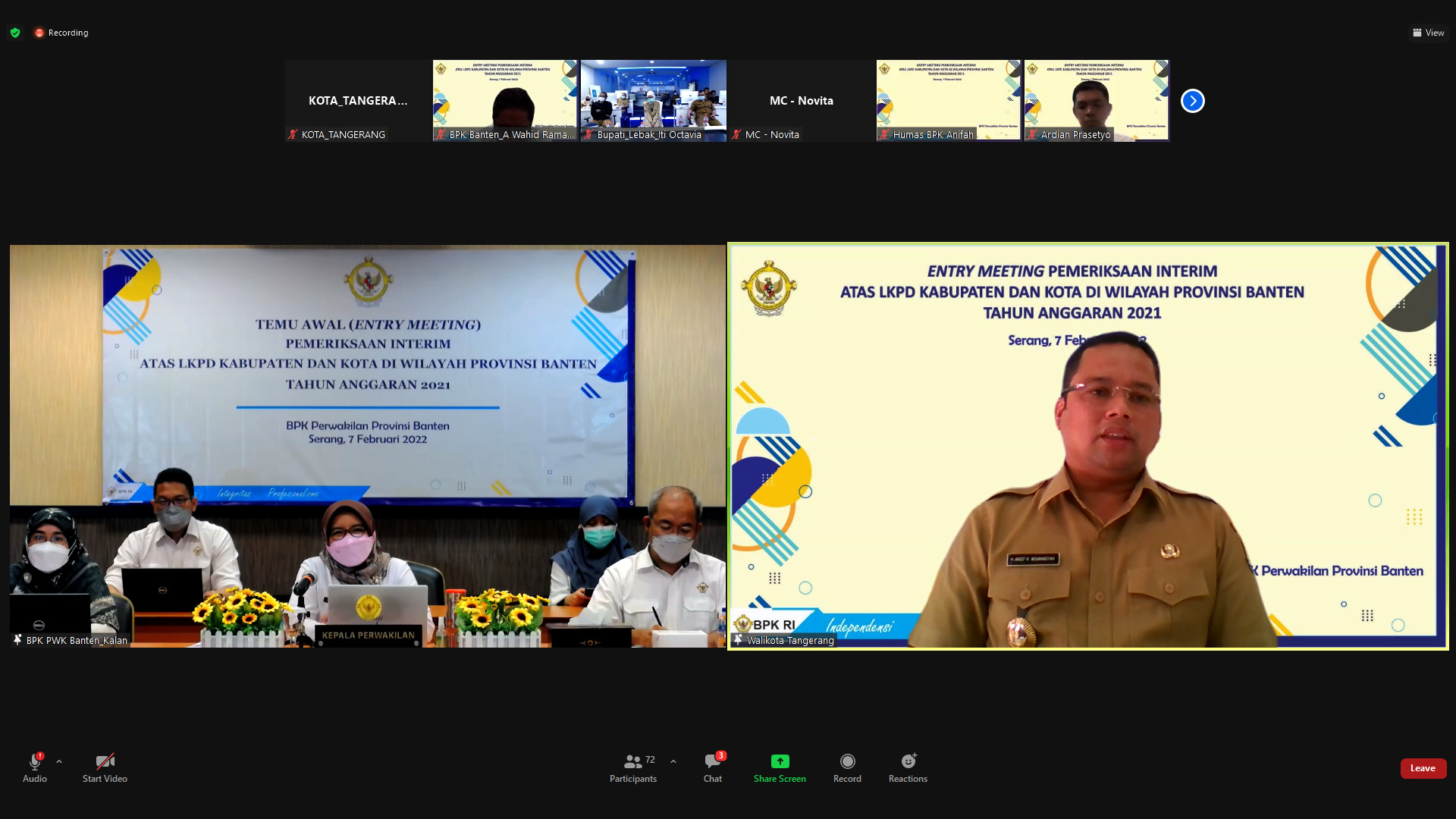 Wali Kota Tangerang H. Arief R. Wismansyah menghadiri kegiatan Temu Awal (Entry Meeting) Pemeriksaan Interim Atas LKPD Kabupaten dan Kota...