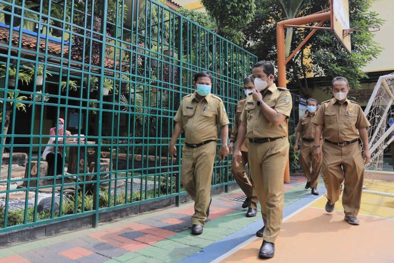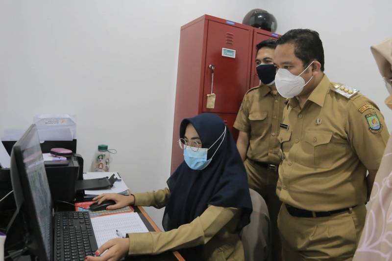 Wali Kota Tangerang H. Arief R. Wismansyah didampingi Kepala Dinas Pendidikan Kota Tangerang Jamaludin meninjau proses pendaftaran Penerimaan Peserta Didik...