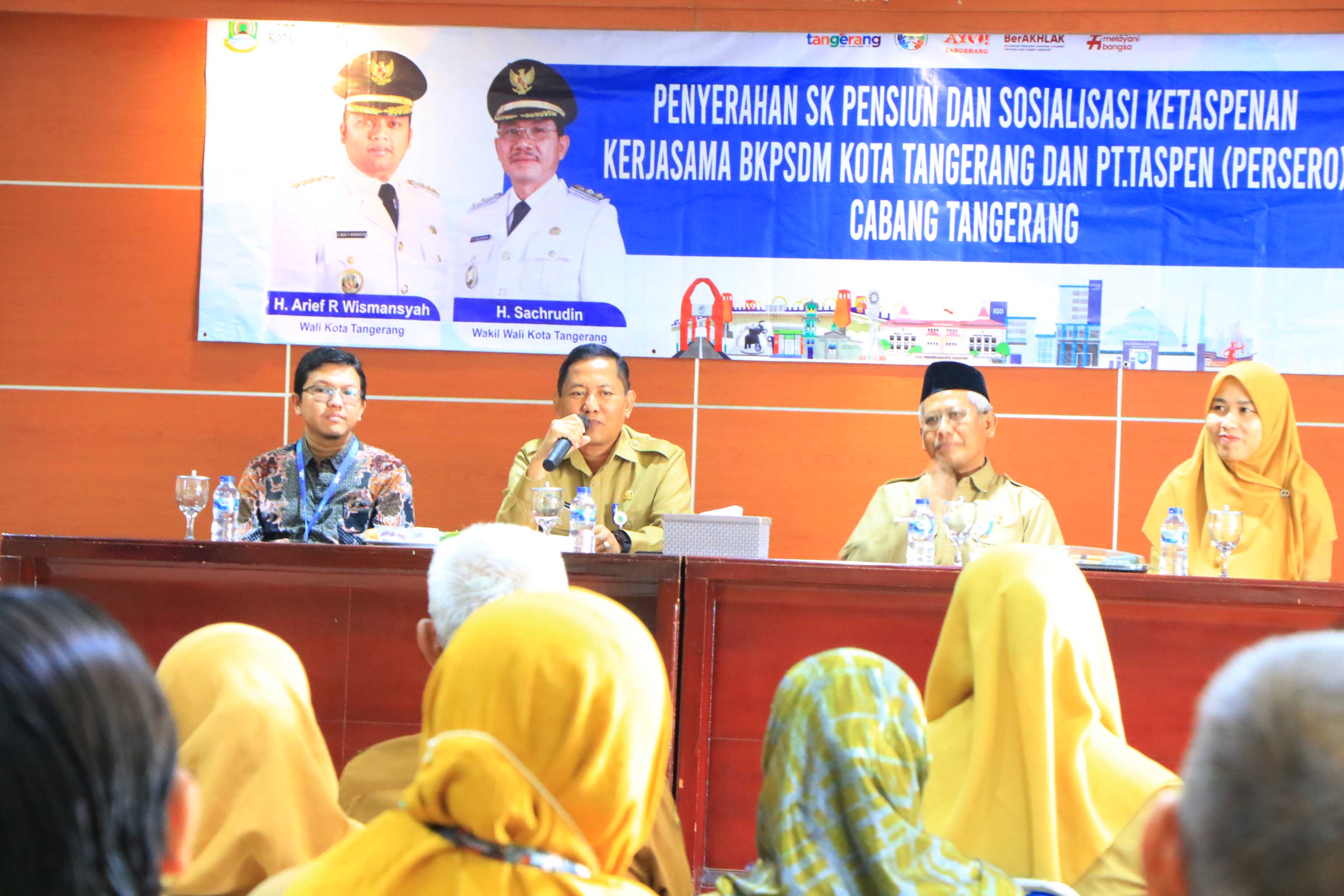 Sekretaris Daerah Kota Tangerang, Herman Suwarman secara simbolis menyerahkan Surat Keputusan (SK) kepada puluhan Pegawai Negeri Sipil (PNS) yang telah...