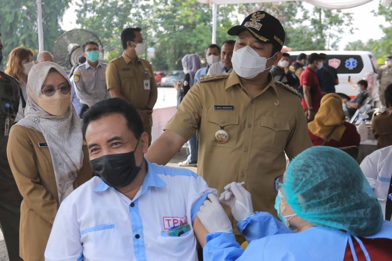 Wali Kota Tangerang H. Arief R. Wismansyah meninjau pelaksanaan vaksinasi Covid-19 dosis tiga atau booster dengan sasaran pengemudi transportasi umum...