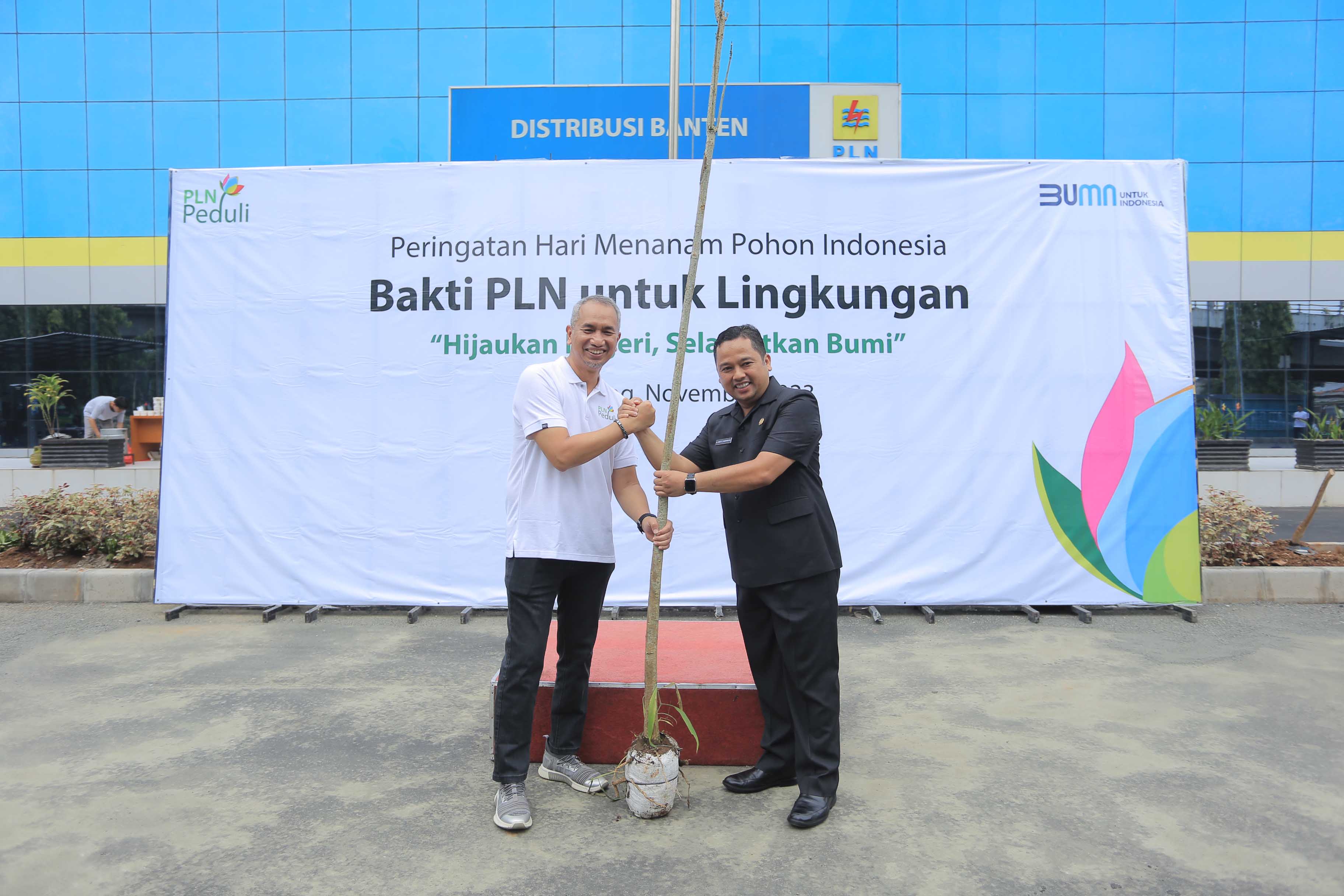Wali Kota Tangerang, Arief R. Wismansyah, turut berpartisipasi dalam aksi menanam pohon bersama Perusahaan Listrik Negara Unit Induk Distribusi (PLN...