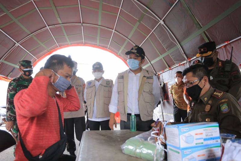 Guna menekan penyebaran covid-19, di wilayah Kota Tangerang, petugas gabungan dari Pemerintah Kota (Pemkot) Tangerang bersama TNI-Polri kembali menggelar check...