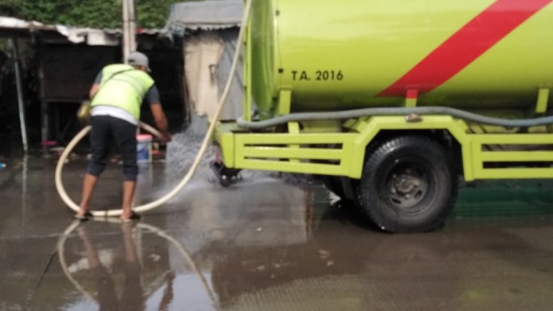Banjir Berangsur Surut, Petugas Dinas Pertamanan Bantu Penyemprotan Lumpur