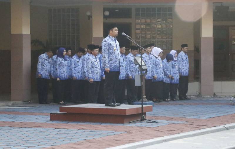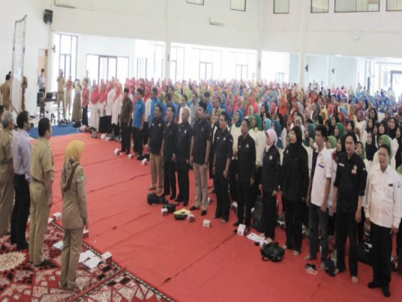 Pelataran Pusat Pemerintah Kota (Pemkot) Tangerang dipenuhi para pegawai berseragam Korps Pegawai Republik Indonesia (Korpri) yang tengah melakukan Apel Pagi...