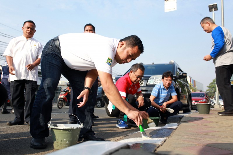 <p>Wali Kota Tangerang, Arief R. Wismansyah, Jumat (03/08), terlihat sedang menyapu saluran air yang ada di Jl. Perintis...