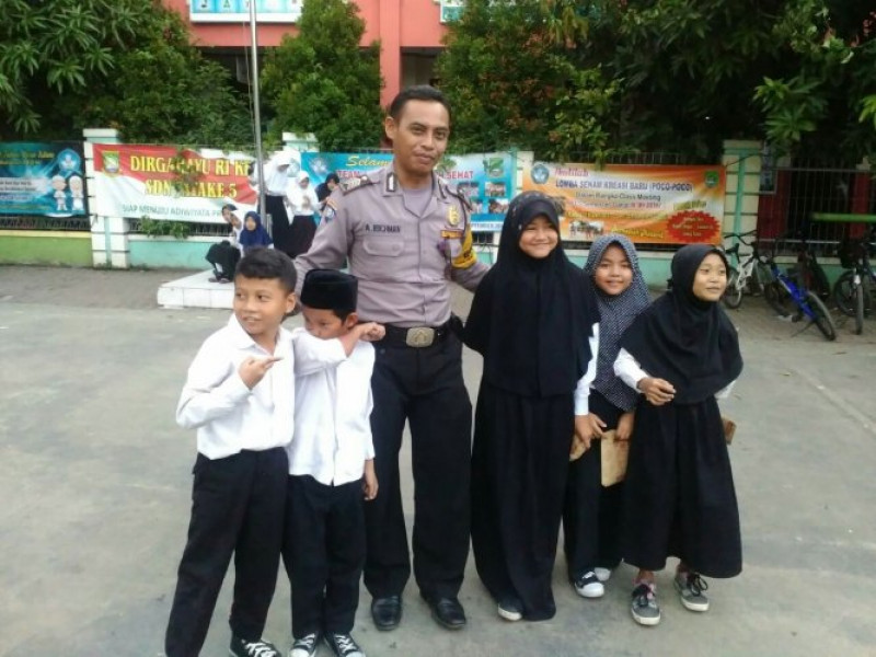 Kunjungi SDN Gandasari 3, Bripka Ade Rochman Disambut Suka Cita Para Siswa