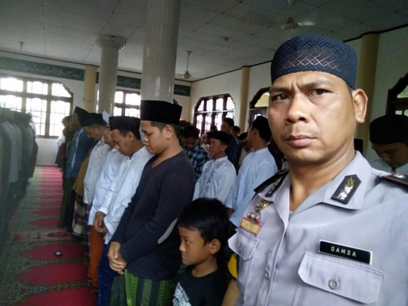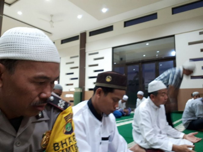 Giat Polsantren Bhabinkamtibmas Aiptu Sucipto melaksanakan sholat subuh berjamaah di masjid AL Barkah