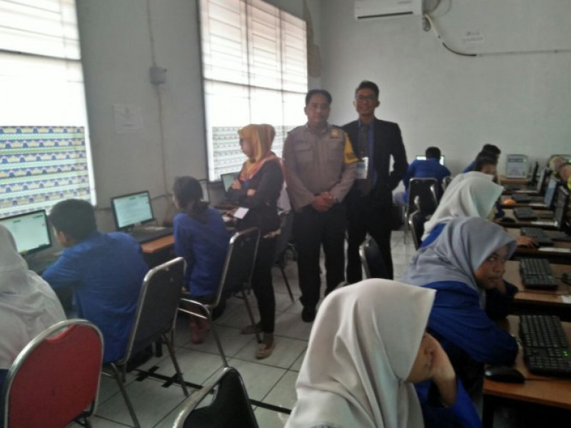 Pengamanan UNBK di SMK Bina Mandiri Oleh Bhabinkamtibmas Ds. Kampung Melayu Barat Aiptu Yudhi Ciptakan Ketentraman