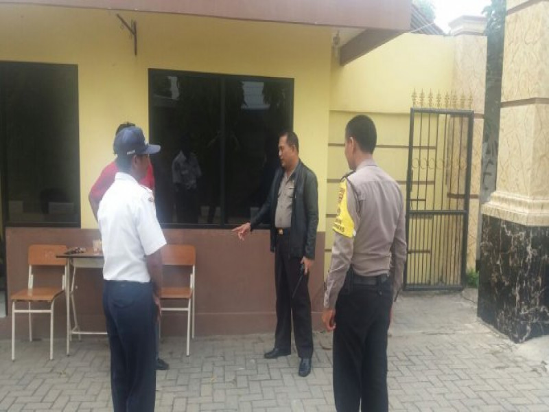 Kapolsek Batu Ceper meninjau anggotannya yang sedang melaksanakan pengamanan UNBK di sekolah SMA 14 Batu Ceper Kota Tangerang