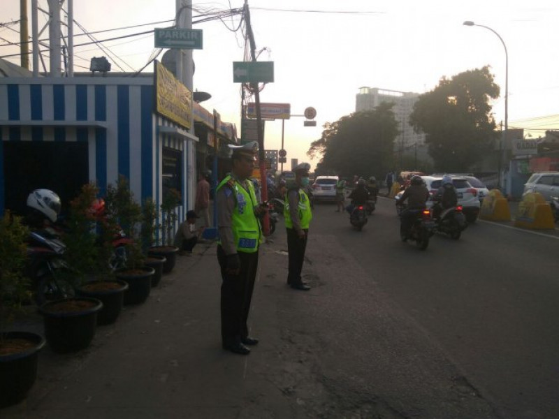 Kanit Lantas Polsek Jatiuwung Bersama Anggotanya Gatur Lalin di Depan RS. An-Nisa