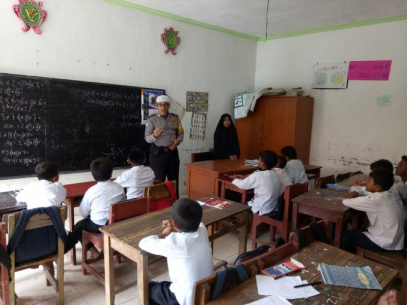 Di MI Wardatul Jannah Bhabinkamtibmas Salembaran Jaya Aiptu Yosef Himbau siswa Giat Belajar