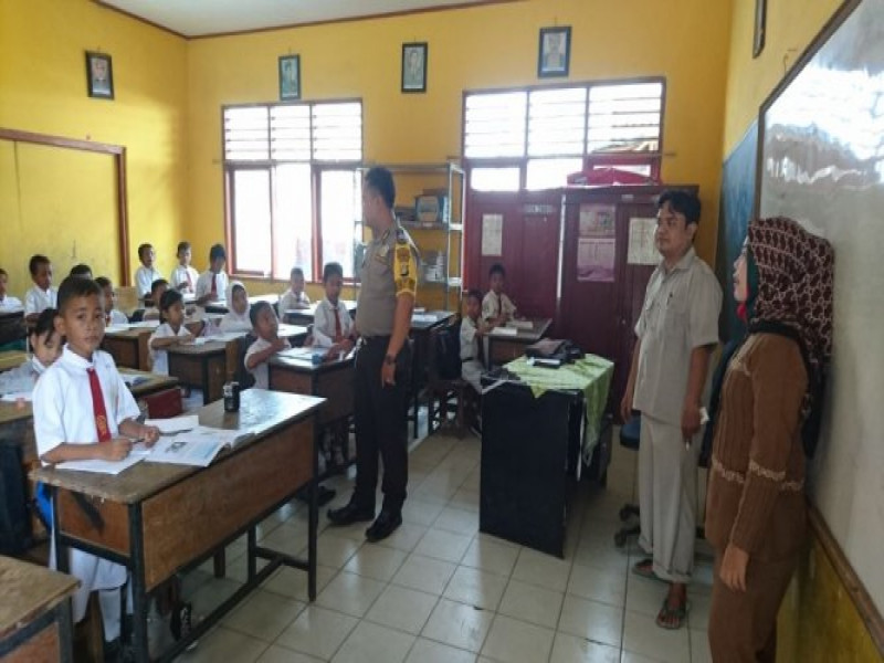Polkiss Bripka Basir di SDN 2 Jati Mulya Himbau Kepada Pelajar Untuk Mentaati Peraturan Sekolah