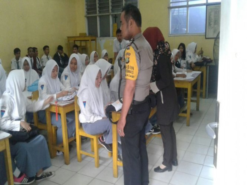 Bhabinkamtibmas Polsek Neglasari berikan pengamanan dalam Pelaksanaan Ujian Nasional 2018 tingkat SMK