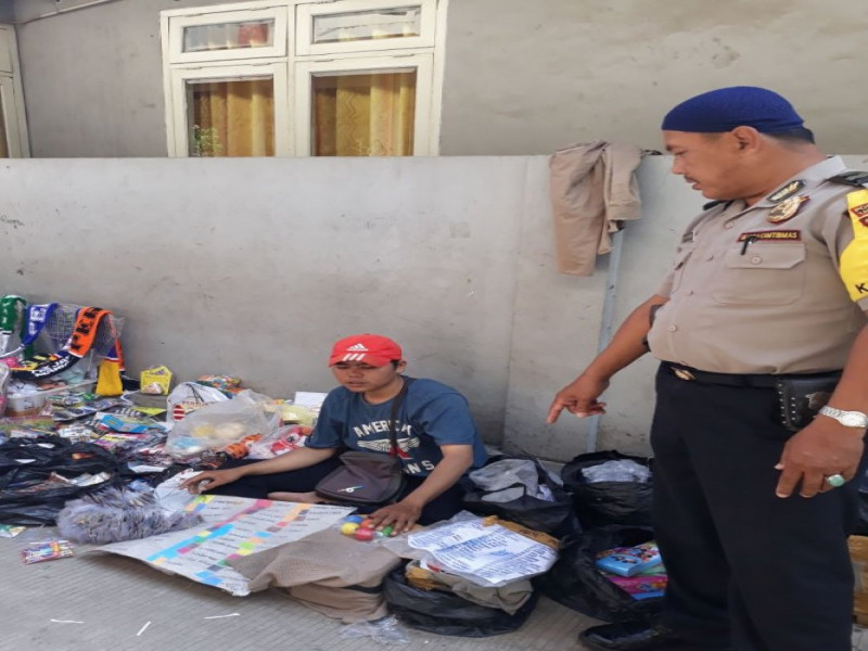 Aiptu Suharno berikan arahan dan himbauan kepada pedagang dan pelajar SDN Bubulak 2 Batu Ceper