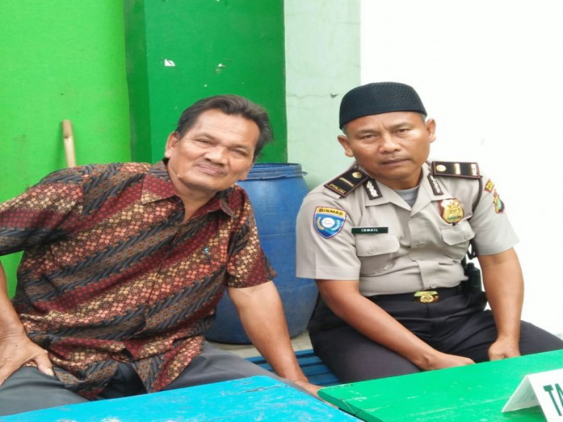 Bhabinkamtibmas Aiptu Suharno ikut mengawasi Ujian UNBK SMK di Pondok Pesantren Assidiqiyah 2 Batu Ceper