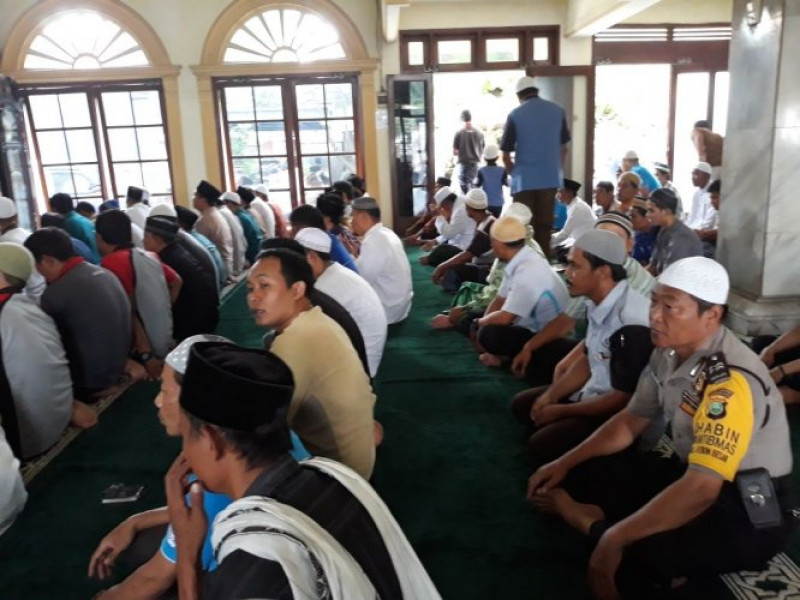 Bhabinkamtibmas Laksanakan sholat berjamaah dan lakukan sambang dialogis dengan Jemaah masjid Jami AN Nur