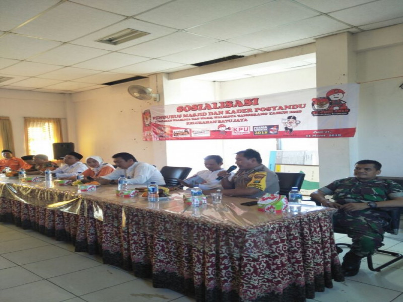 Aiptu Suharno Hadiri acara Sosialisasi Pemilukada yang akan di berikan kepada kader Posyandu dan DKM Masjid wilayah Kelurahan Batu jaya
