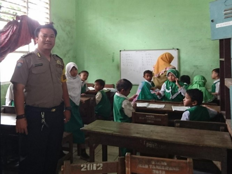 Giat Brigadir Hasan Bhabinkamtibmas Salembaran Jati Polkiss di MI Hidayatussiban Himbau Pelajar Giat Belajar