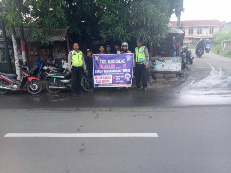 Anggota Unit Lantas Polsek Cipondoh Beri Himbauan Kepada Pengemudi Ojeg