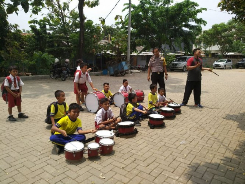 Binmas Kelurahan Mekarsari Kunjungi Murid SD berlatih Drum Band