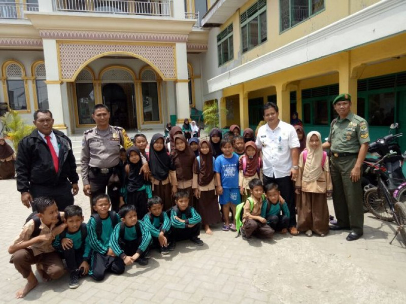 Anggota personil Bhabinkamtibmas Brigadir Joni bersama 3 Pilar menyambangi MI Nururrohman RT.02/05 Darusalam
