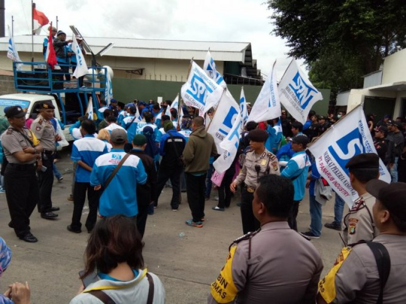 Personil Polsek Jatiuwung Amankan Unjuk Rasa Lanjutan Karyawan PT. Dianmas Star