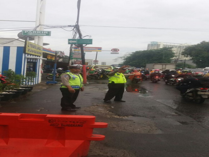 Polantas Polsek Jatiuwung, Lakukan Pengaturan Lalu Lintas Pagi Hari di Depan RS. An-Nisa