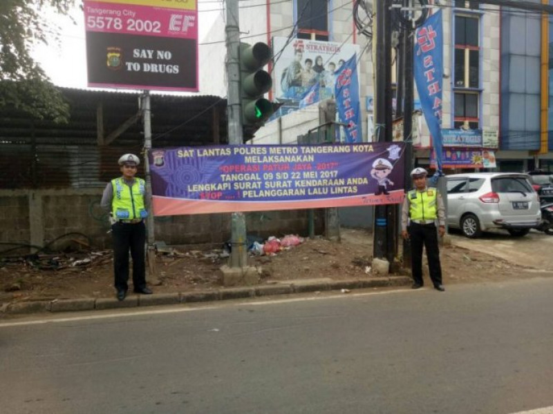 Anggota Unit Lantas Polsek Cipondoh Pasang Spanduk Operasi Patuh Jaya 2017