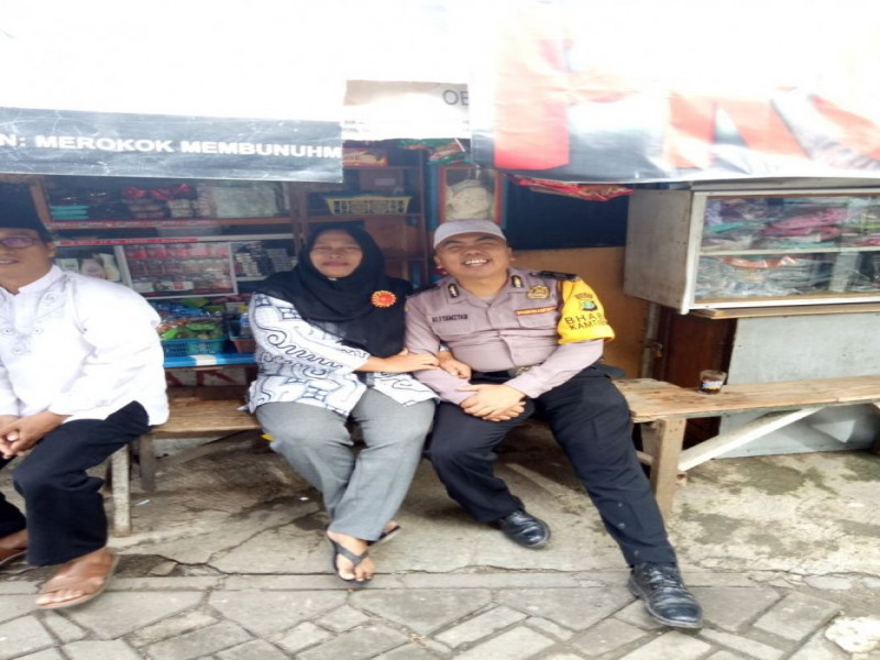 Anggota Bhabinkamtibmas Brigadir Ali Yamsyah sambang dialogis dengan Ibu Fuji Warga RT.01/01 Kelurahan Poris Gaga Baru