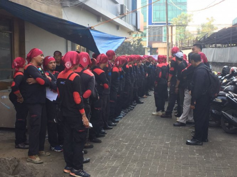 Polsek Jatiuwung Pantau Keberangkatan Massa Buruh FSPMI Kota Tangerang Menuju Istana Negara - Jakarta