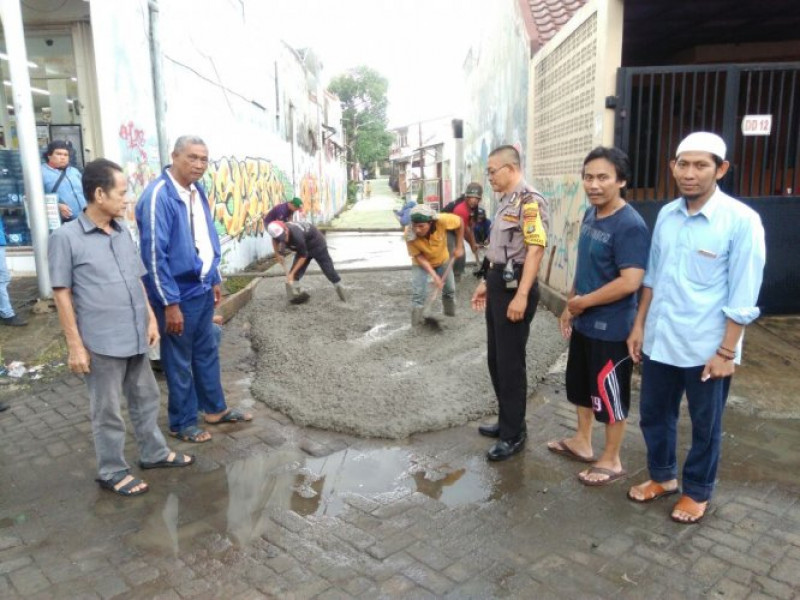 BHABINKAMTIBMAS SUDIMARA BARAT MENGHADIRI KERJA BAKTI WARGA PENGECORAN JALAN OLEH PEMKOT TANGERANG