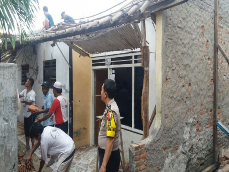 Bhabinkamtibmas Polsek Cipondoh Cek Warga Yang Rumahnya Roboh Akibat Gempa