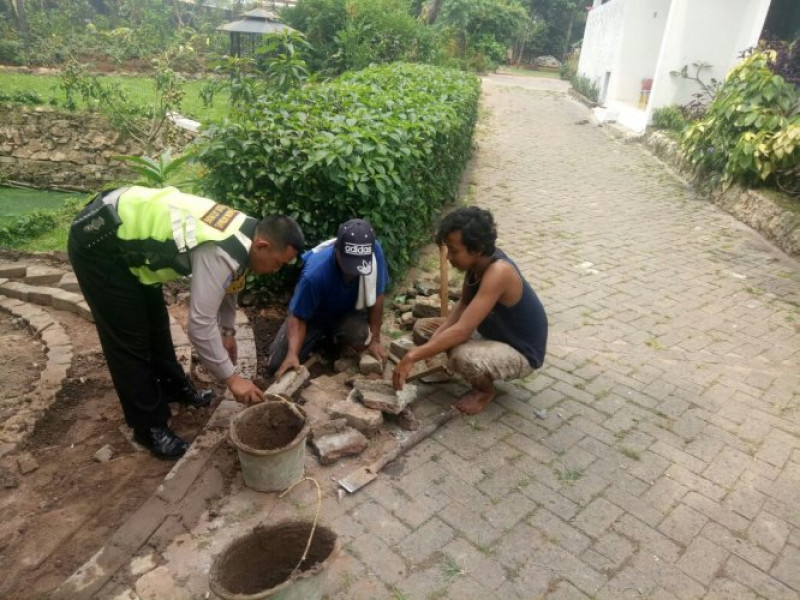 Bhabinkamtibmas Polsek Jatiuwung Kerja Bakti Bersama Warga Membuat Saluran Air