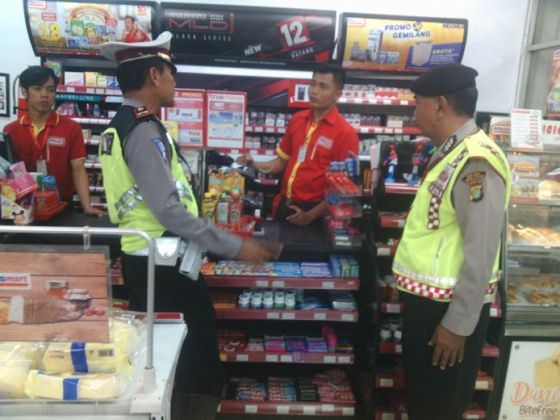 Selaku Pawas IPDA HENDRO BAYU lakukan Patroli Minimarket antisipasi Kejahatan di malam hari