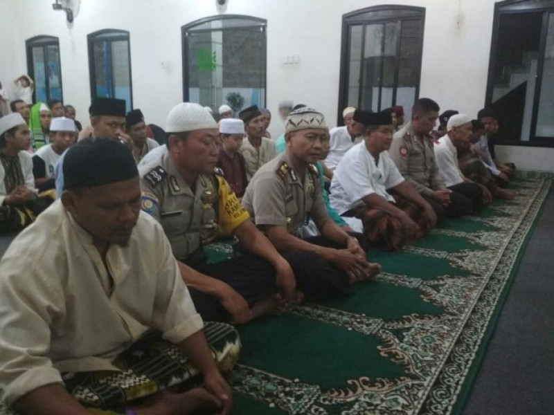 Kegiatan program Polsantren Bhabinkamtibmas Polsek Batu ceper melaksanakan sholat Magrib berjamaah sekaligus lakukan sambang dialogis