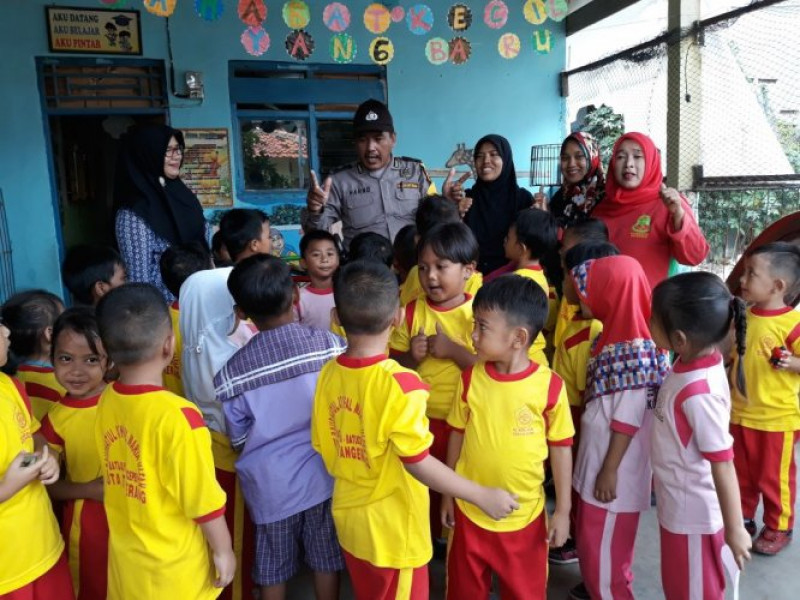 Kegiatan Polisi Bhabinkamtibmas Aiptu Suharno sambang siswa adi-adik Sekolah TK R.A Maria Ulfa