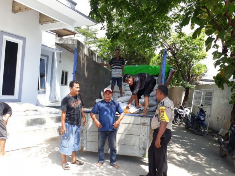 Binamas Polsek Teluknaga Monitoring Kegiatan Pembagian Raskin di Desa Kosambi Timur