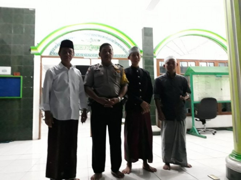 Kegiatan Program Polsantren Bhabinkamtibmas Aiptu Suharno melaksanakan Sholat subuh berjamaah bersama warga di Masjid Shalahudin