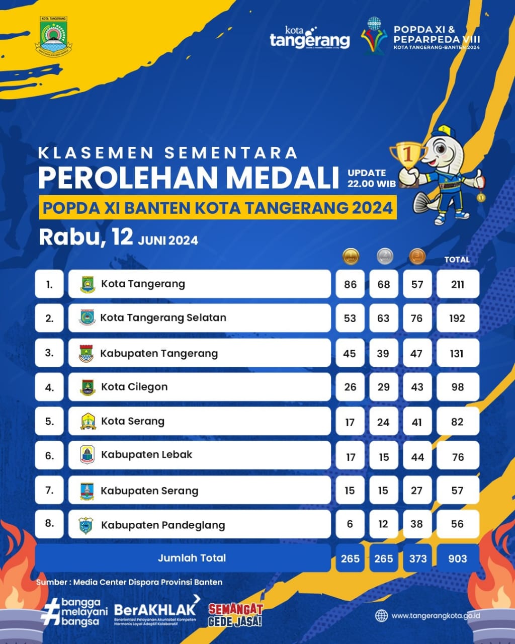 Perolehan Medali Sementara POPDA XI Banten, Kota Tangerang Tempati Posisi Puncak dengan 86 Emas