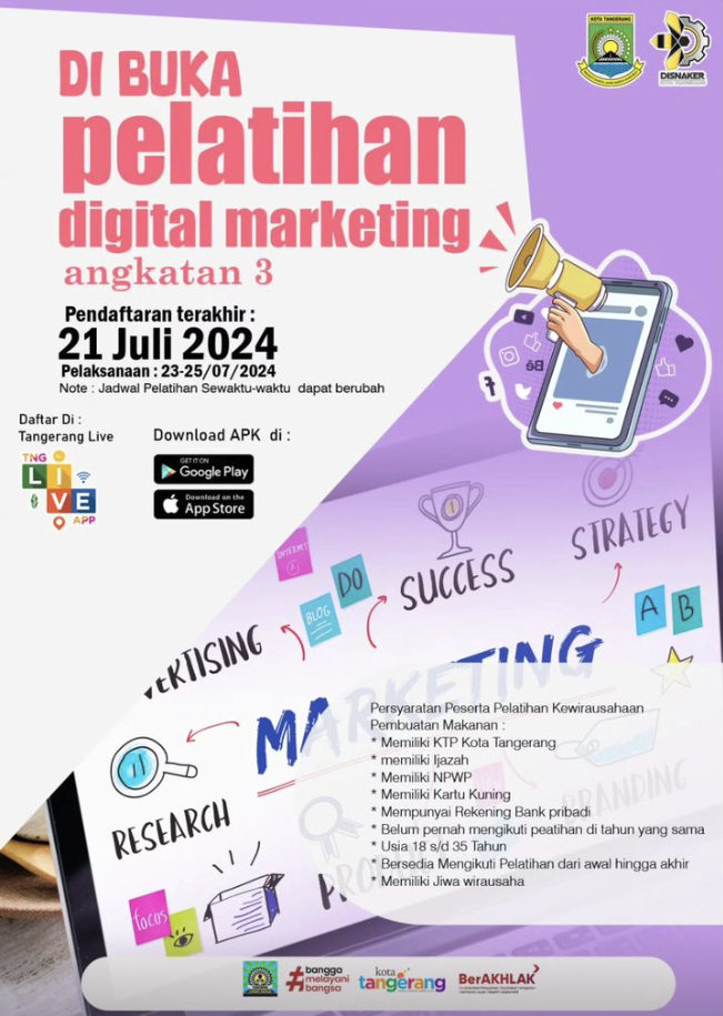 Terus menghadirkan kesempatan atau peluang kerja untuk masyarakat Kota Tangerang, Pemerintah Kota (Pemkot) Tangerang melalui Dinas Ketenagakerjaan (Disnaker) kembali membuka...