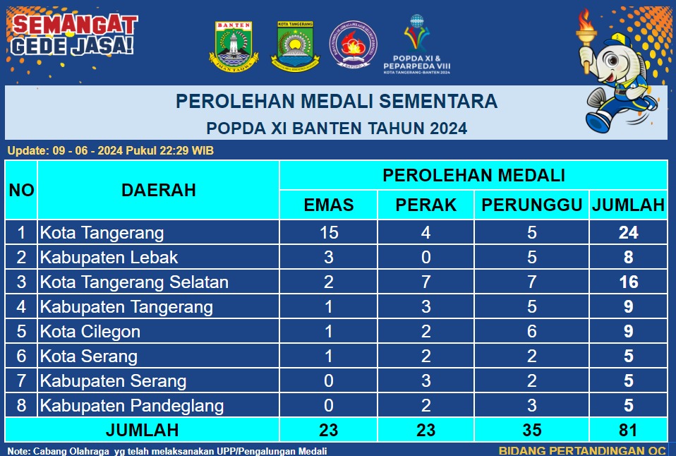 Kota Tangerang sebagai tuan rumah penyelenggaraan Pekan Olahraga Pelajar Daerah (POPDA) XI Banten terus menunjukkan eksistensinya. Berdasarkan data Bidang Pertandingan...