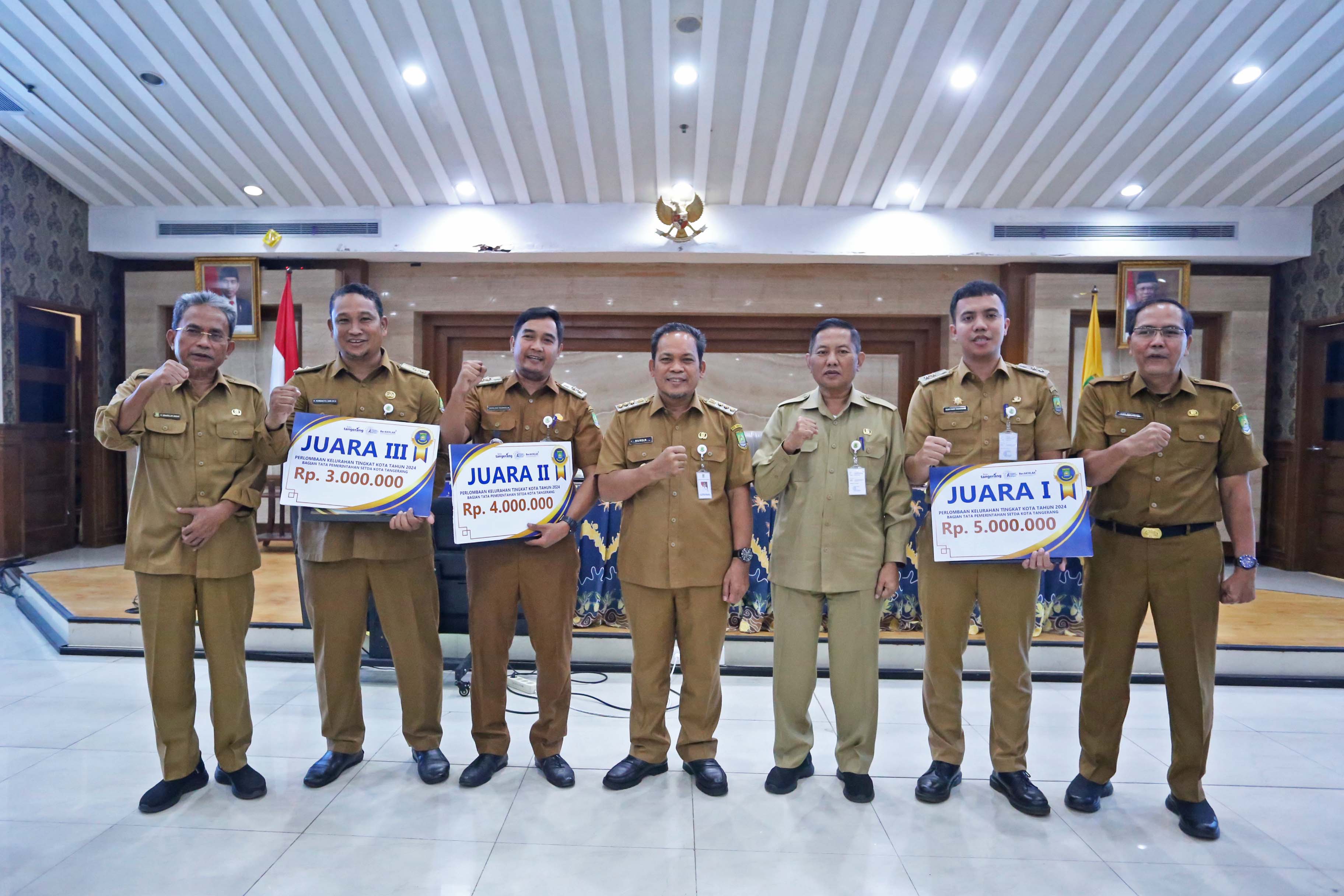 Penjabat (Pj) Wali Kota Tangerang, Dr. Nurdin, menyerahkan penghargaan kepada tiga Kelurahan terbaik Pemenang Lomba Kelurahan Terbaik Tingkat Kota Tangerang...