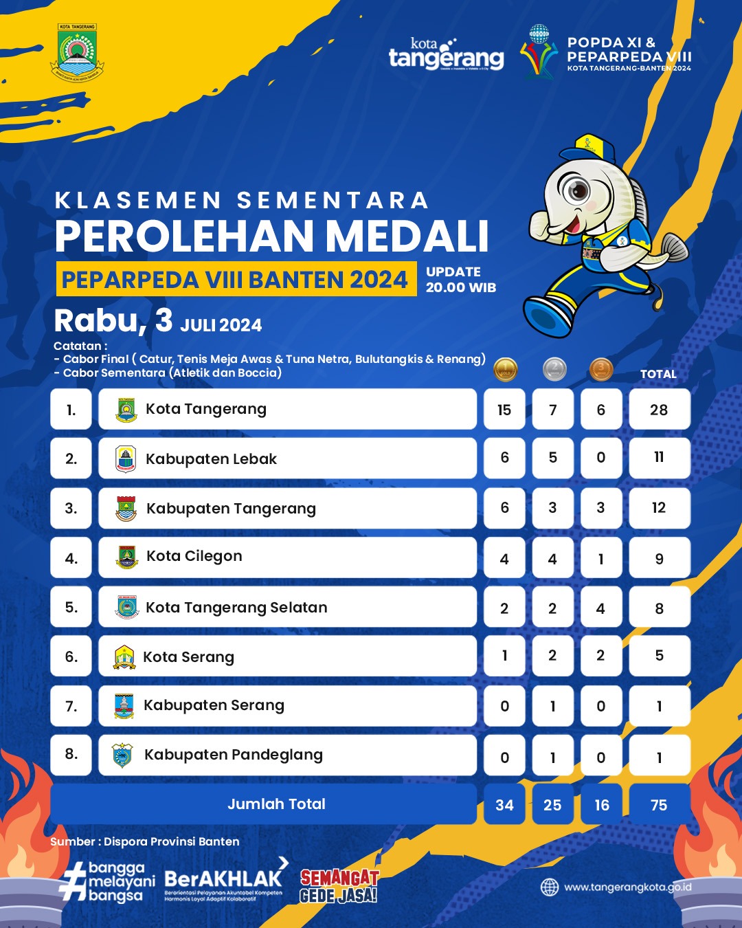 Pekan Paralympic Pelajar Daerah (PEPARPEDA) VIII Banten di Kota Tangerang sebagai tuan rumah, hampir rampung.