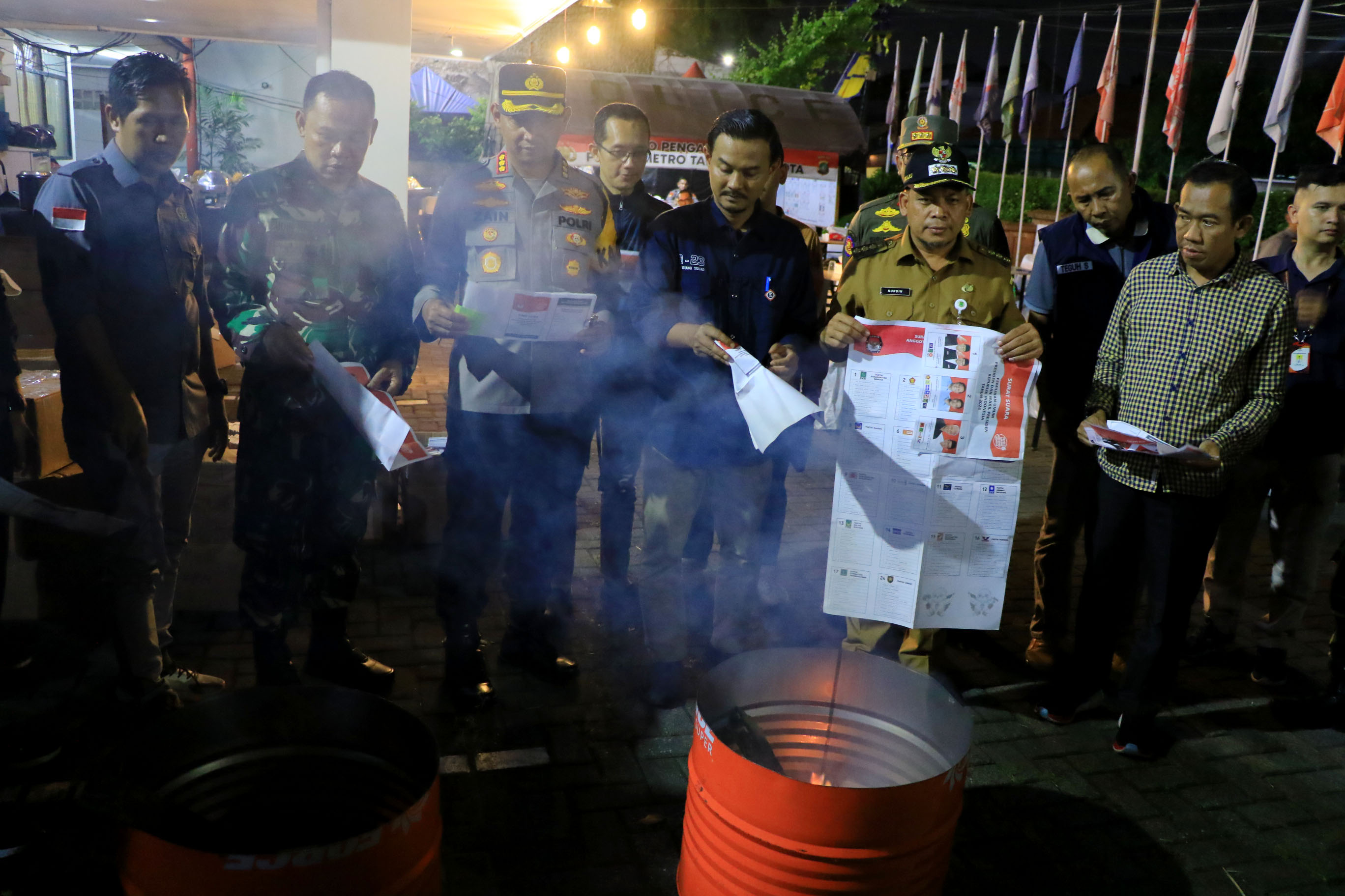 Penjabat Wali Kota Tangerang Dr. Nurdin beserta istri dan anak-anaknya menggunakan hak pilihnya pada Pemilihan Umum (Pemilu) 2024 di TPS 81, Kelurahan...