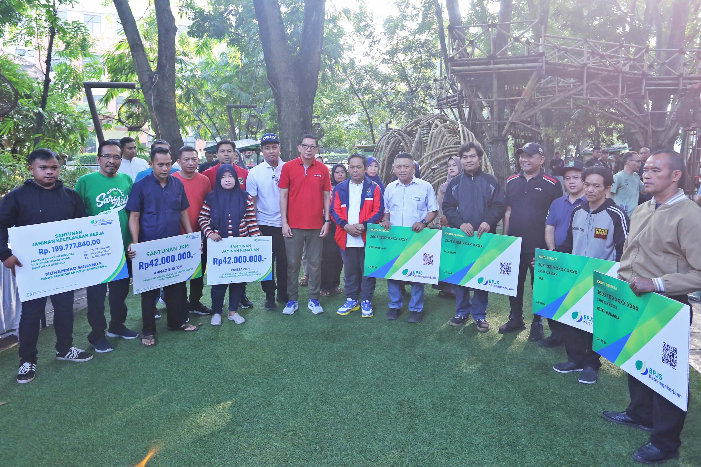 Pemerintah Kota (Pemkot) Tangerang, memfasilitasi jaminan keselamatan bagi para pekerja rentan di Kota Tangerang, yang ditandai dengan penyerahan kartu tanda...