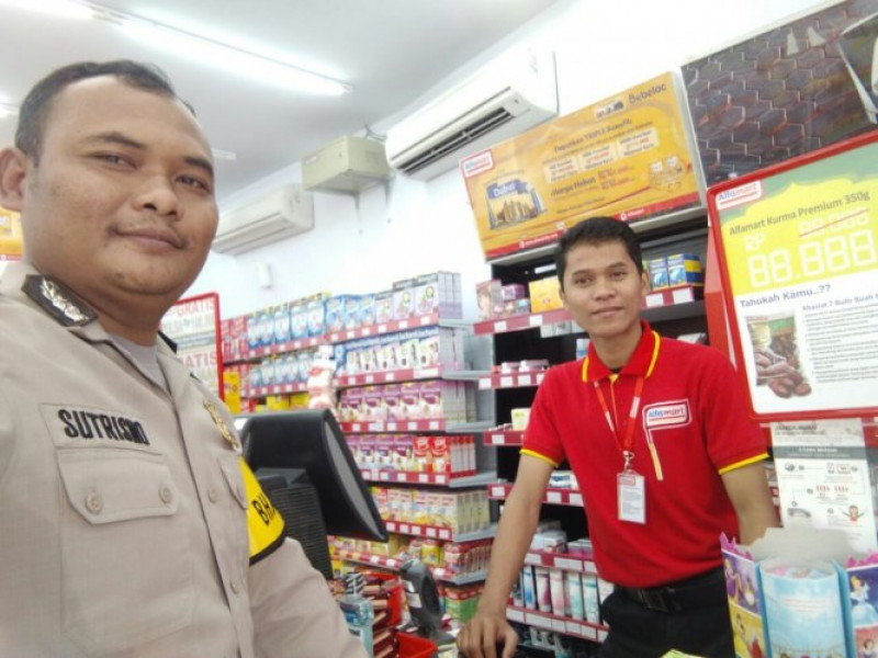 Tangerang – Bhabinkamtibmas Polsek Cipondoh Resor Metro Tangerang Kota untuk Kelurahan Panunggangan Utara Bripka Sutrisno melaksanakan sambang silaturahmi kepada karyawan Alfamart bernama Fikri di RT 06 RW 01 Kelurahan Panunggangan Utara, Kecamatan Pinang, Kota Tangerang, Senin (6/11/2017) jam 10.30 wib.