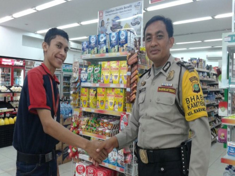 Aiptu Sumianto, STB Bhabinkamtibmas Kelurahan Karangsari sambangi salah satu Minimarket di Jl.Dr.Sitanala, RT. 02/02, Karangsari, Neglasari, Kota Tangerang. Senin (11/12/2017)