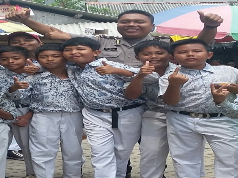Bhabinkamtibmas kelurahan Batuceper Aiptu K. Handoko melaksanakan kegiatan sambang dialogis dengan murid - murid Sdn Kebon Besar 1 RT. 05/03 Kelurahan Batuceper Kecamatan Baruceper Kota Tangerang.